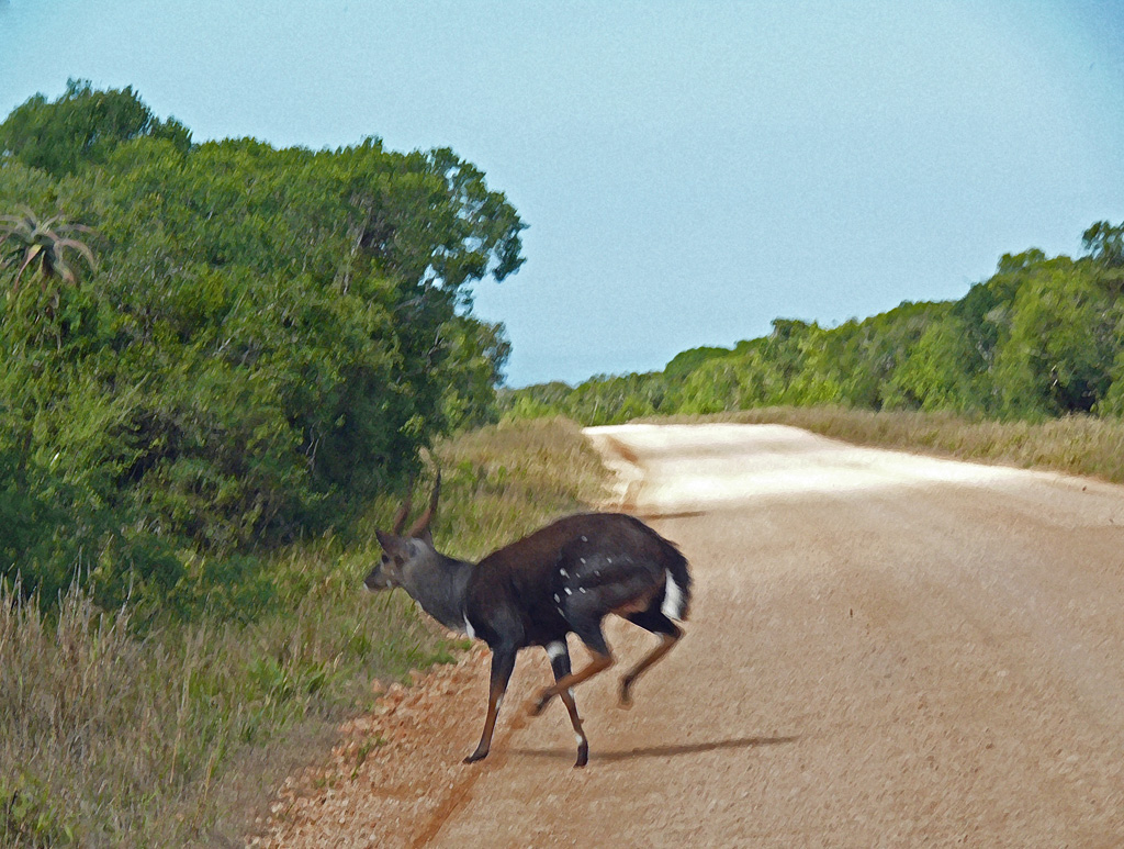 Continuing on into the Colchester section we were thinking how much nicer it was than the public road we had come in on when a kamikaze warthog leaped across the road practically in front of my wheels and a little further on a black bushbuck darted across. Fortunately neither was injured.