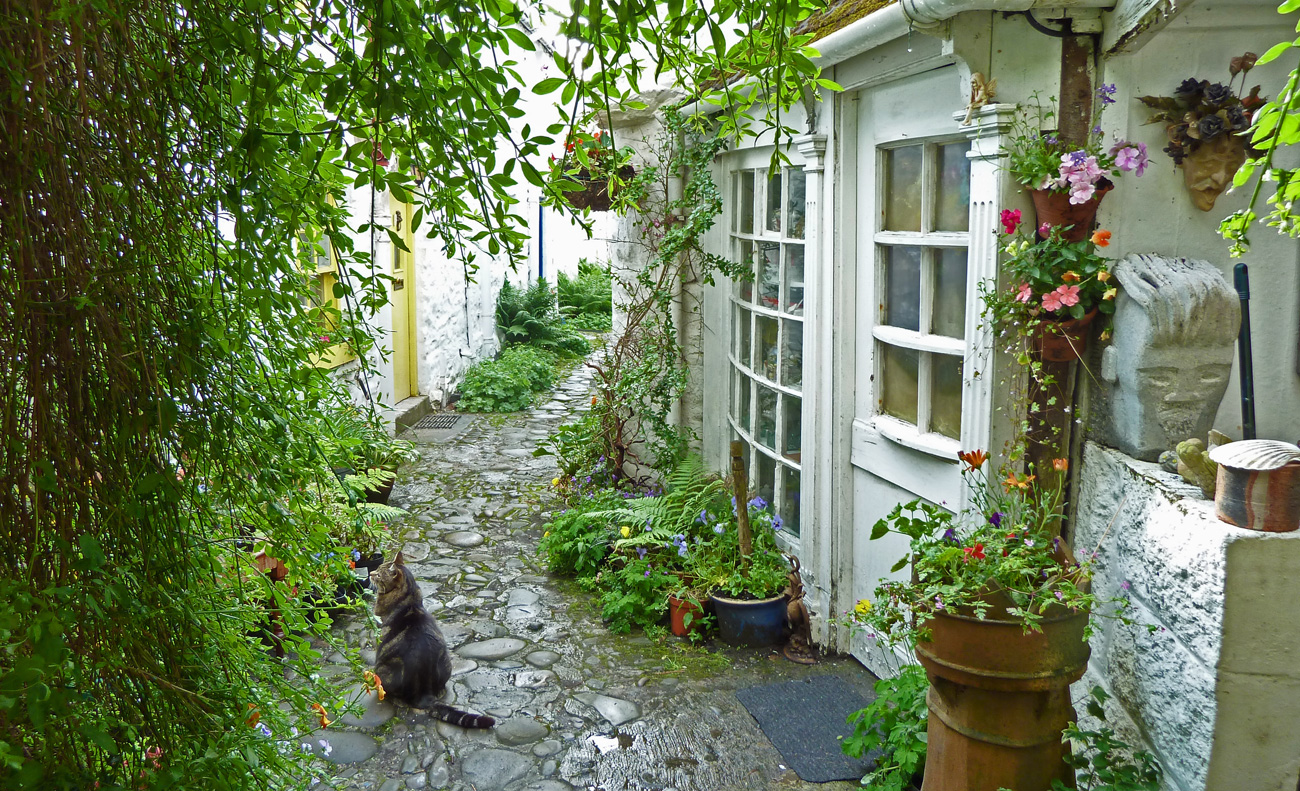 At 5:30 in the evening, the rain had cleared and the sun encouraged us to go out and explore the little town that will be our home for the next week.  And an open doorway to a cobbled wynd (a narrow street or alley in Scotland, especially between houses) …well could you resist?