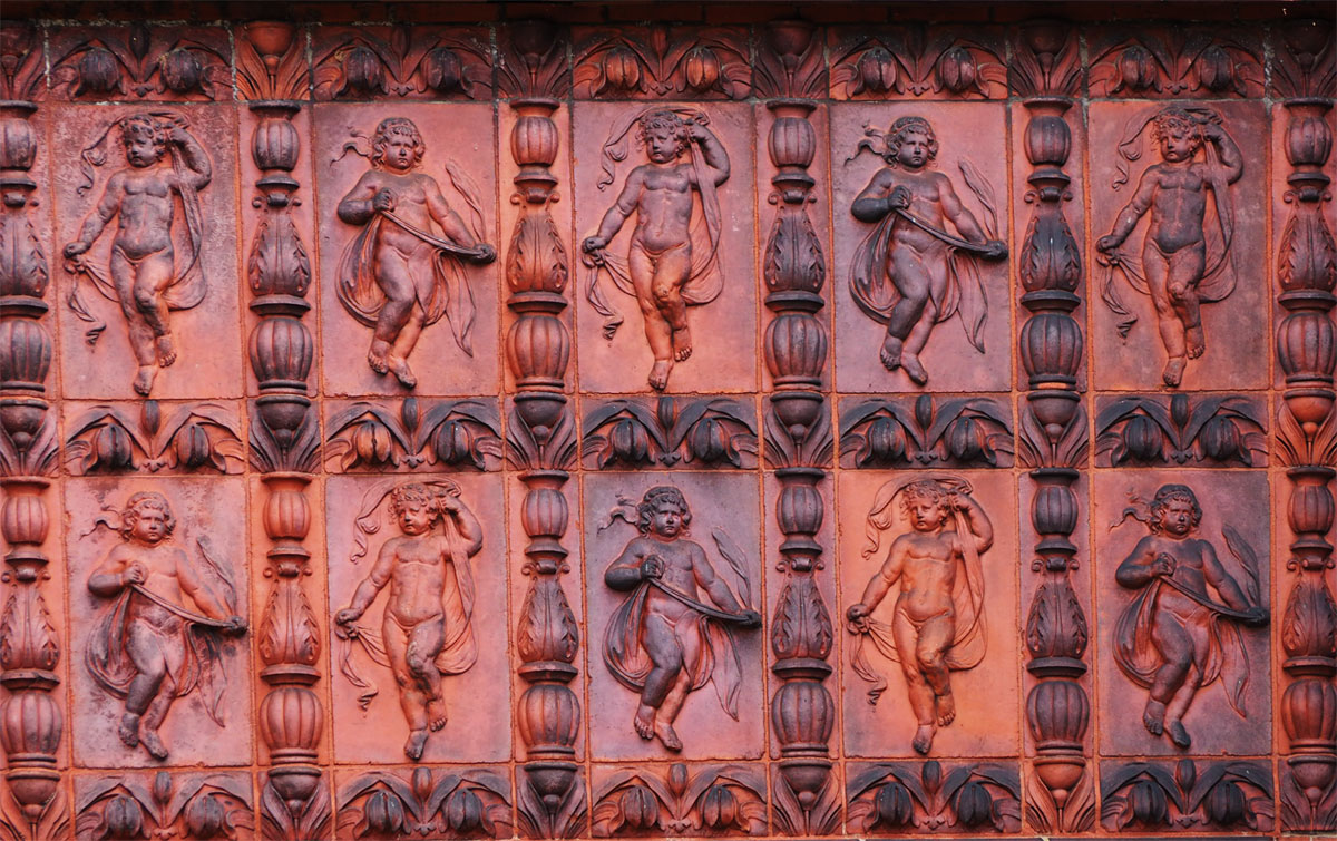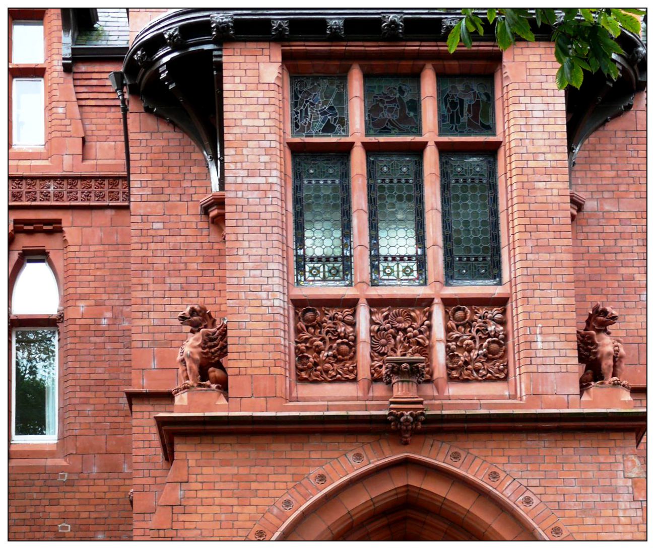 Built in the style of the Arts and Crafts Movement with ornate decorative bricks and tiles/panels, the style placed great value on the work, the joy of craftsmanship and the natural beauty of materials.