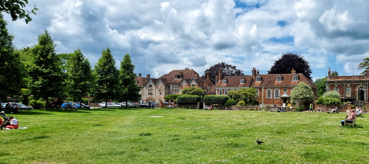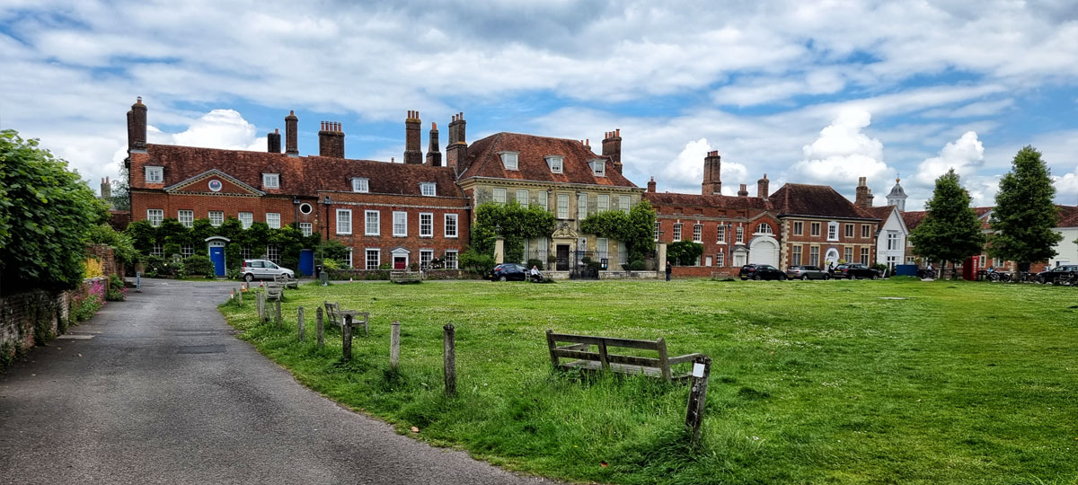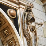 In the foreground are eight boys kneeling and looking at Colet. The scene refers to the end of the preface to the Latin grammar that he wrote for the school: “And lift up your little white hands for me, which prayest for you to God … ” There is a picture of the Child Jesus in the background. In the rear at the High Master’s desk is the celebrated scholar William Lily, the first High Master of the school.