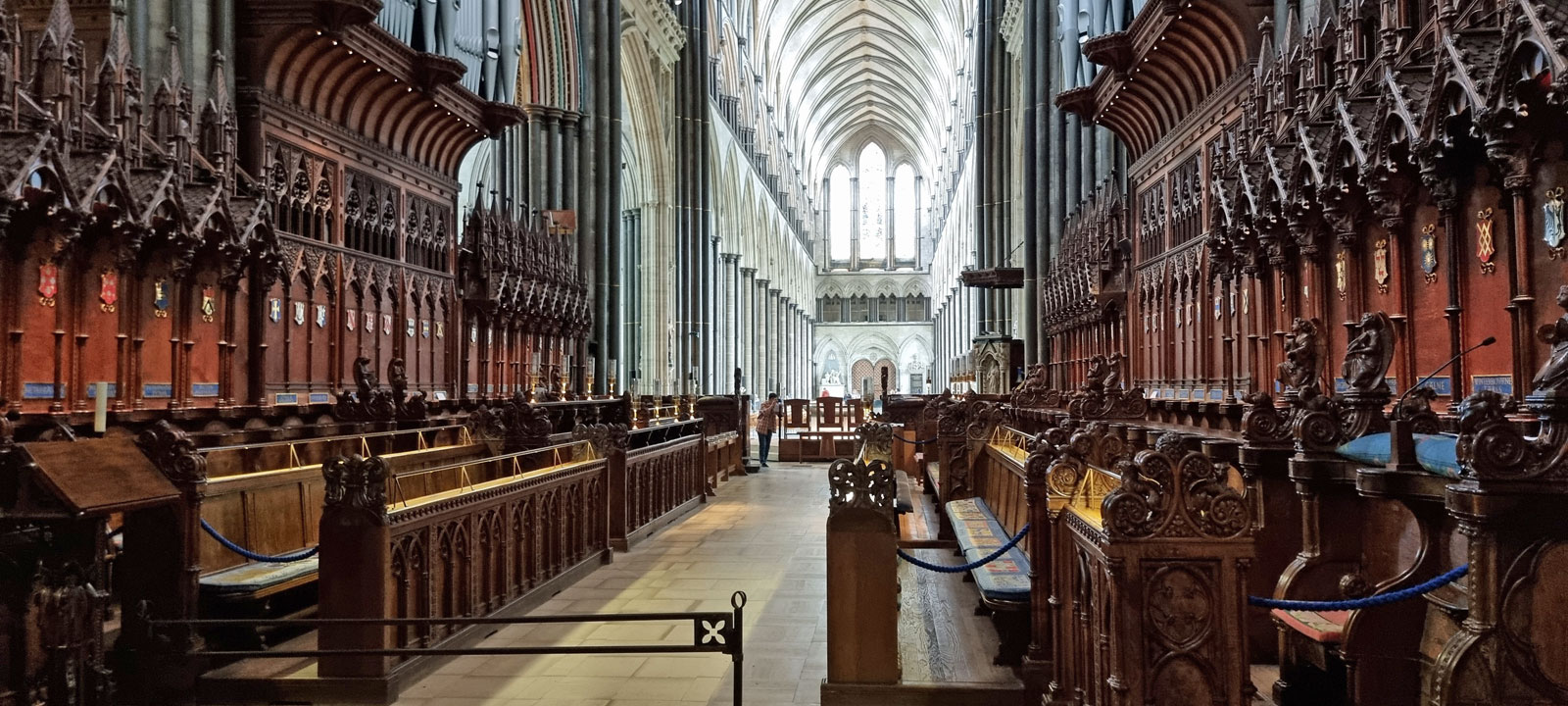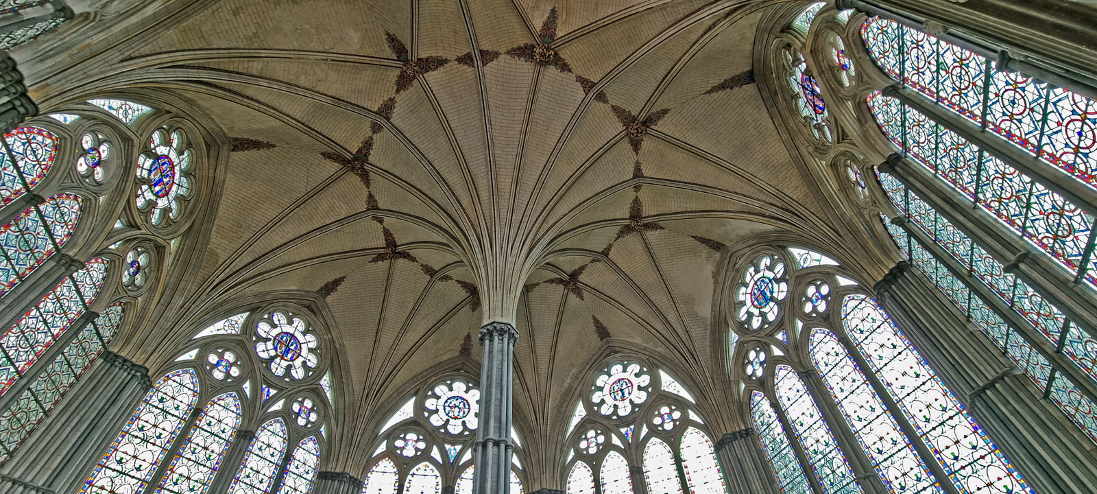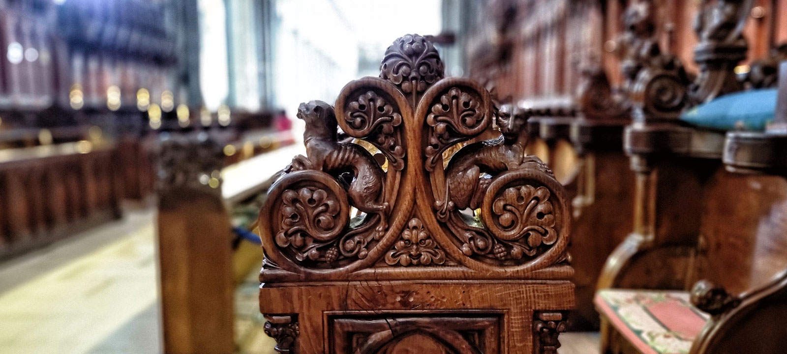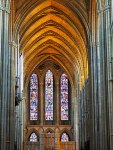 The biblical stories are told in and around the quire. The great east windows tell the story of Christ and his Passion.