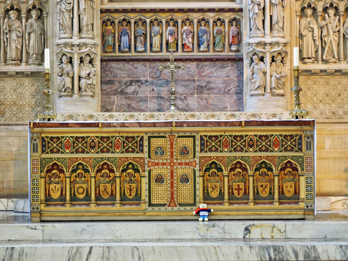 The choices reflect the late Victorian sensibilities and the enthusiasms of the two creators, like, for instance, the execution of King Charles I which I didn’t see. There is a flow to the sequence that does make sense. The theme starts in the South transept through to the retro-quire and quire. This section begins with St Peter receiving the keys from Christ and ends with St Benedict though my photos are rather more random.