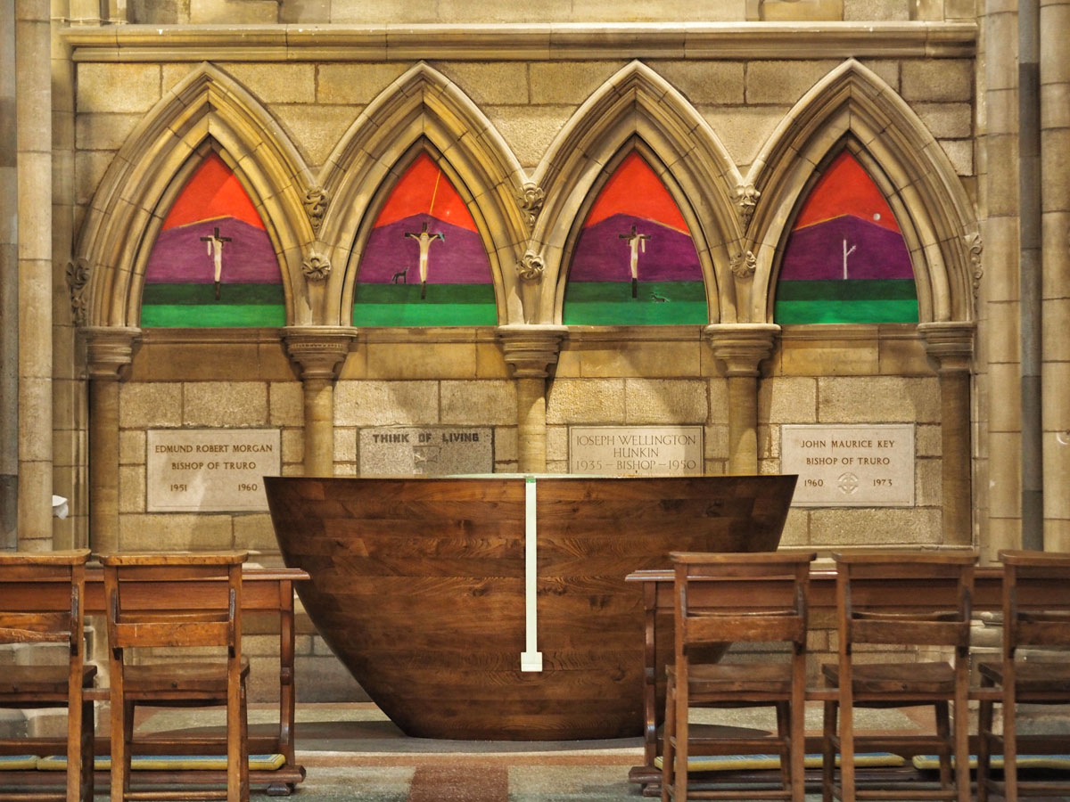 It was the largest stained glass project ever executed and has some of the finest Victorian stained glass in the country, produced by the leading company of the time: Clayton and Bell. The scheme has three big themes: the Trinity, Biblical stories and the history of the English church. Alongside these are three lesser themes: Cornwall, baptism and St Mary’s aisle.