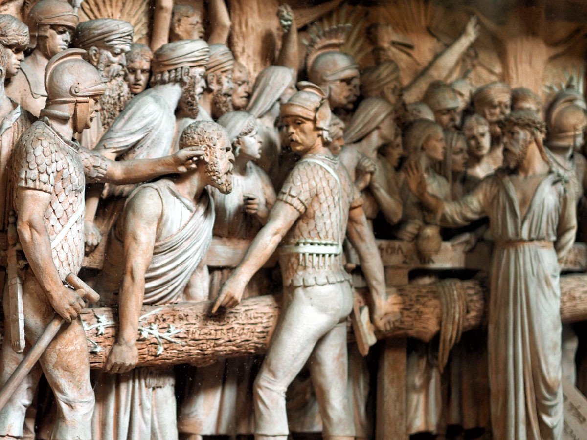 The Deposition. The angels at the top hold the Crown of Thorns and the nails with which Jesus was fixed to the Cross
