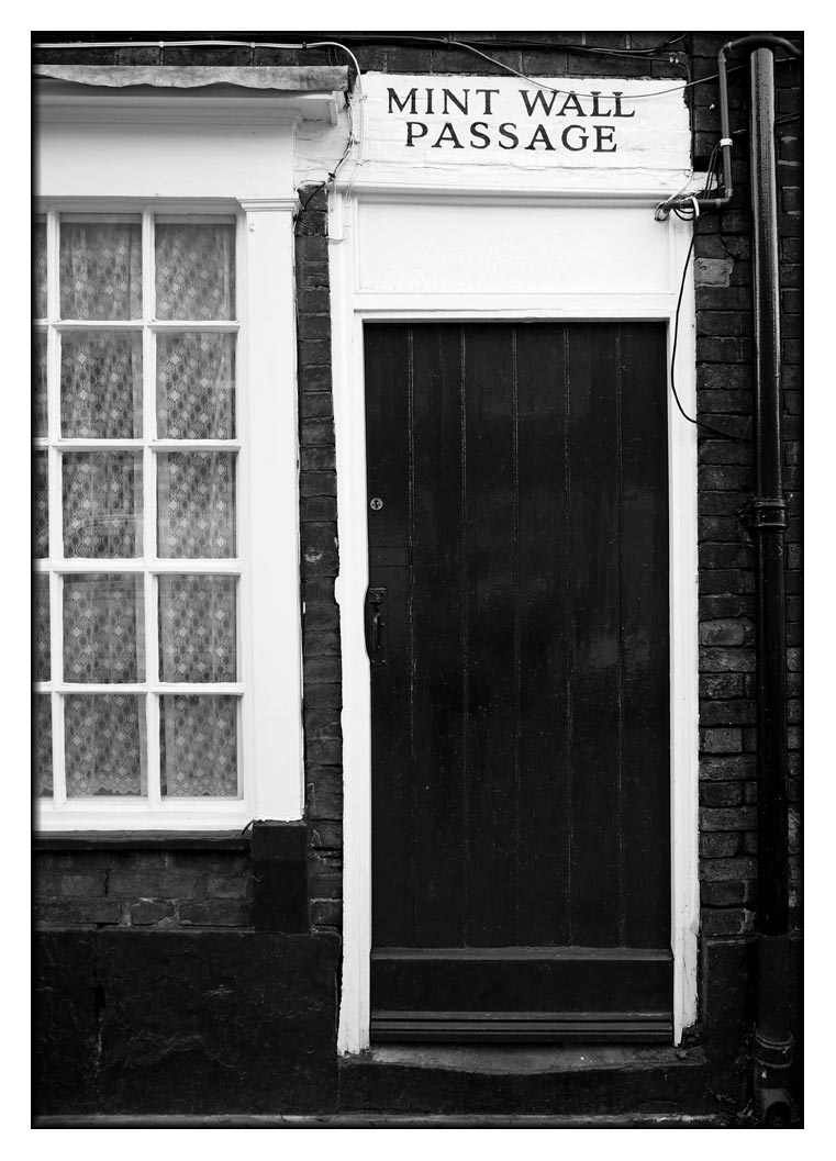 A literal interpretation. Mint Wall Passage on the Bailgate, Lincoln, England. Doors are often found alongside cottages in medieval towns leading to a passageway from which entrances to hidden houses or gardens are found.