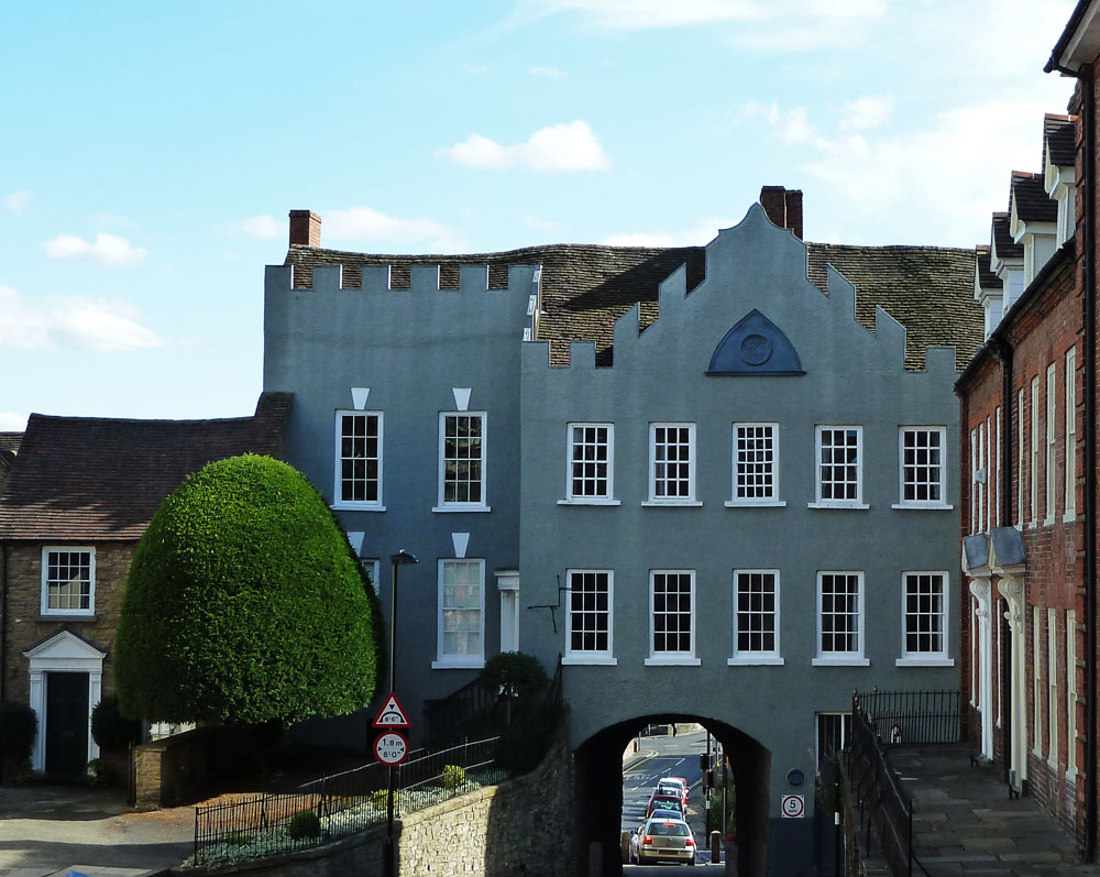 Built in the 13th century the gate was an important entrance into the town from the  Ludford Bridge crossing. It is now partially encased by a large Georgian House.
