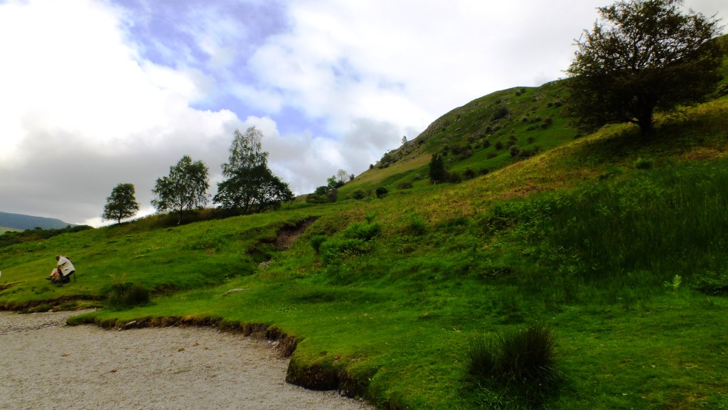We found more people at this end of the lake (and discovered later that there is a car-park not too far away), some sitting admiring the view, others walking their dogs, and other fit people climbing up the fell behind us.