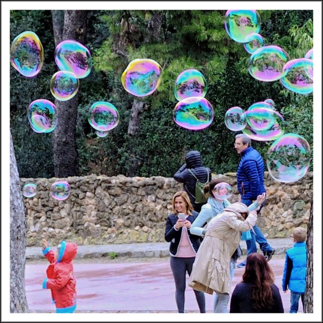 The Park Güell bubble maker in Barcelona was definitely creating an experience to delight everyone, young and old. The little ones squealed with delight as they chased the massive bubbles around trying to catch one.