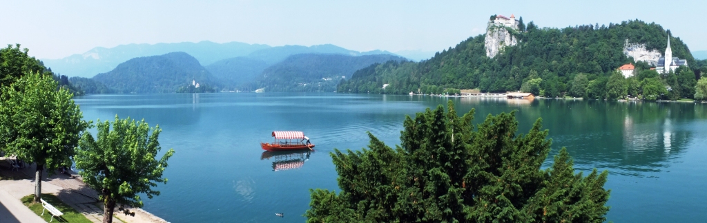 Bled and its perfectly formed lake located in the Julian Alps is in the Gorenjska region of Slovenia, not far from the Austrian and Italian borders. A lake just the right size for a comfortable stroll around its shores with spectacular views from all sides. We found ourselves there for a week in June 2012 when my OH attended a conference. Not far from the airport it was a quick transfer to the Hotel Golf, an ugly sugar-cube building above the lakeside, which had pluses and minuses.