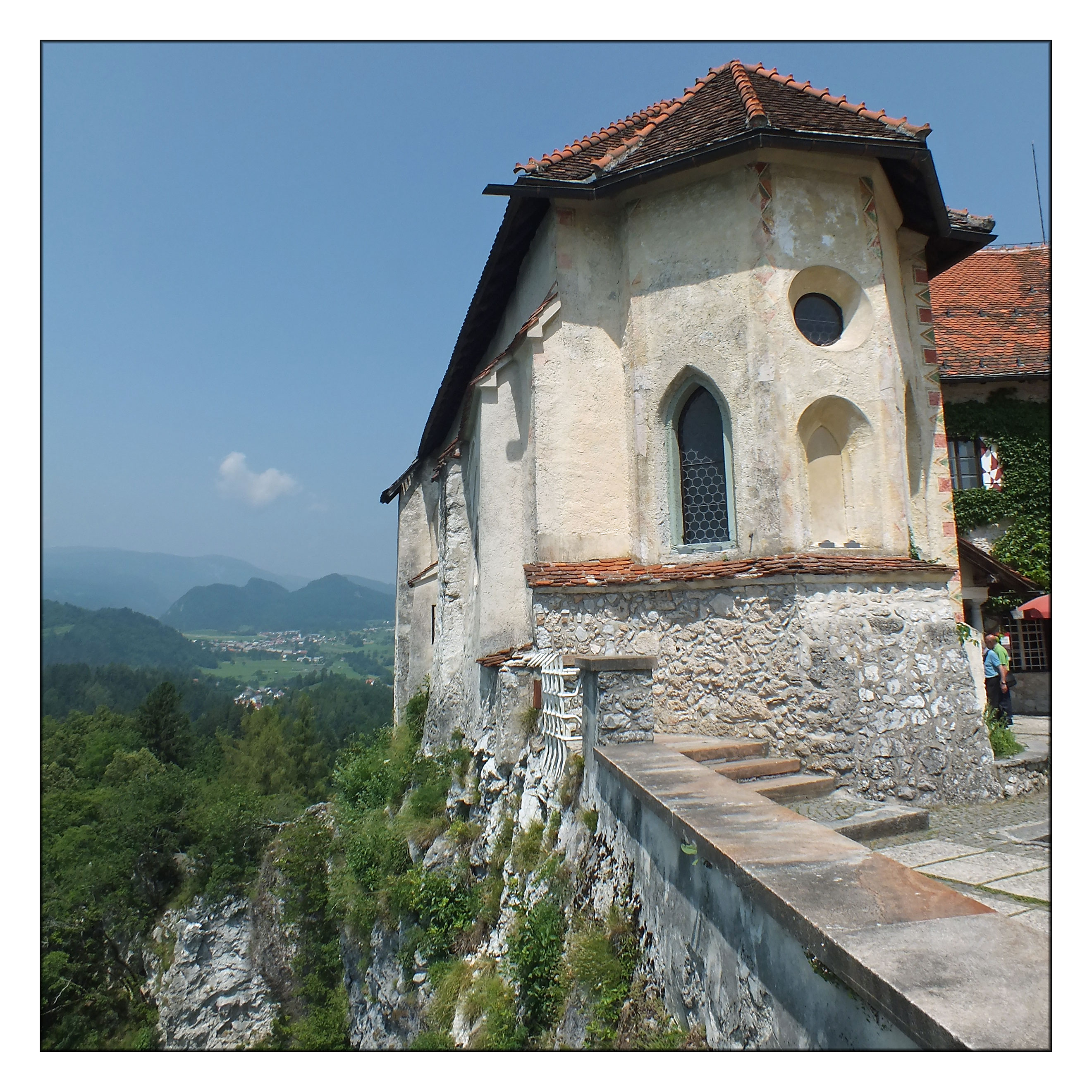 The castle at Bled, Slovenia, can be reached up a steep route from the Castle beach, or slightly less tortuous routes by road from behind the Bledec hostel. The castle offers magnificent views and is an interesting medieval fortress, well worth the effort of getting there.