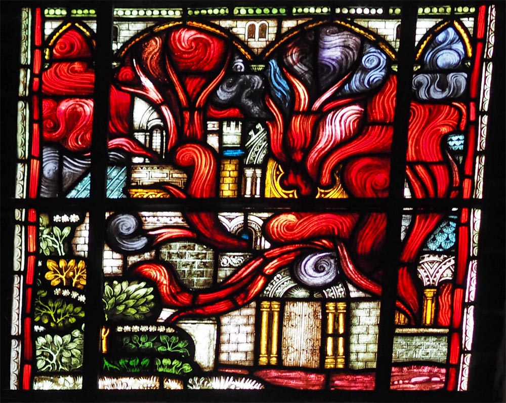And another window in the Chapter House depicts the 12th century cathedral burning (Clayton & Bell 1874)