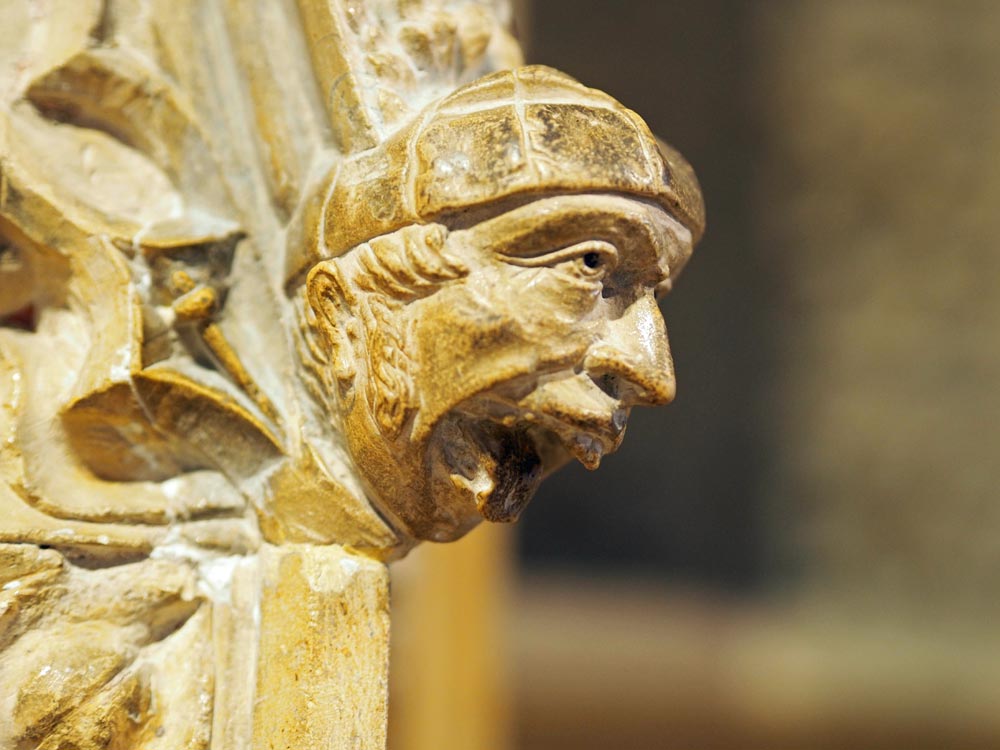 On the other passage there are some odd stone grotesques hidden next to the foliage – possibly stonemasons’ identification? I haven’t been able to find out much about these, but tongue-pullers are thought to a sign of a journeyman mason as St Blaise, who is the saint associated with diseases of the throat and mouth, is also the patron saint of masons. Hair-pullers like the bearded man, serpents and monsters are most likely there to frighten worshippers and remind them that the world is a sinful place. These over-imaginative human and animal forms often distort the natural into ugliness or a caricature.