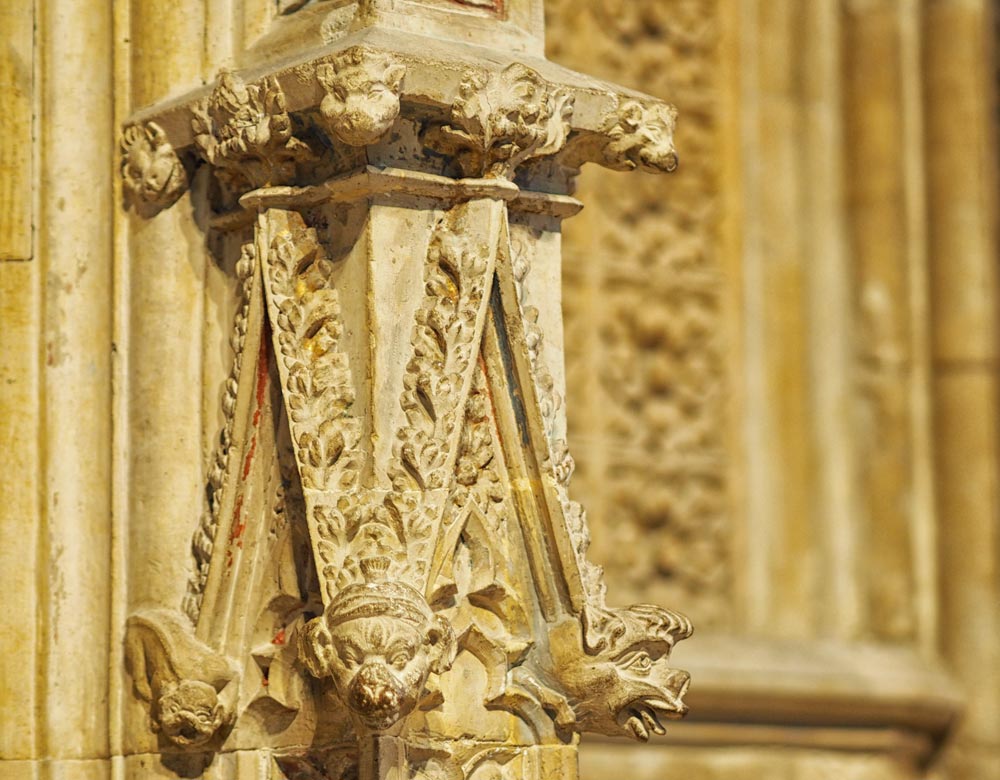 The †13C limestone choir screen is a marvellous example of decorated Gothic architecture with pinnacles and arches with tiny carved animal heads.
