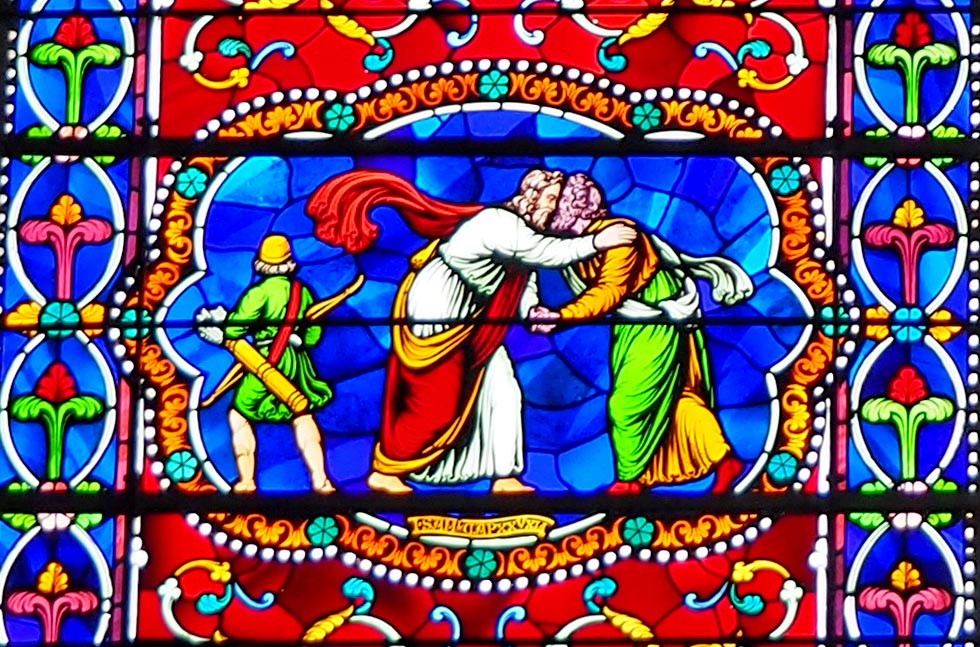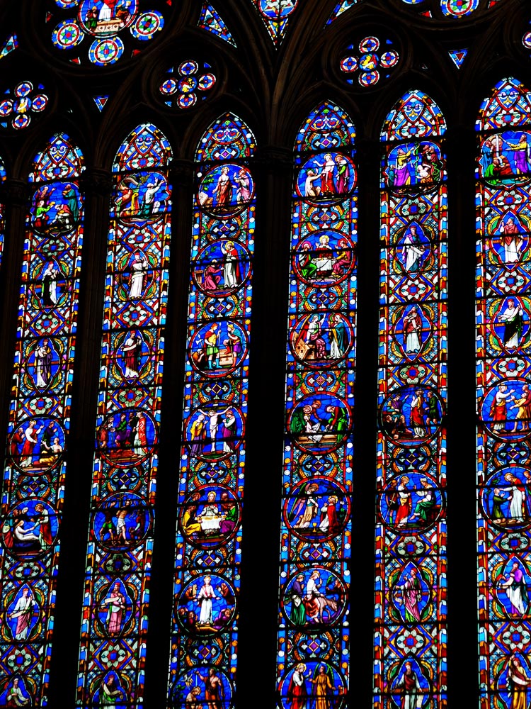 Familiar Old Testament and New Testament scenes are depicted. My eyes are drawn to the different styles, the stylised flowers, the geometric shapes and patterns.