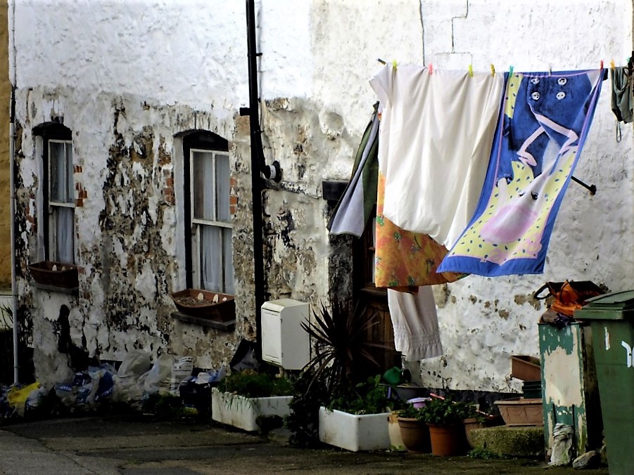 Multi-coloured pegs in use here and I can’t help thinking that wall badly needs rendering. In fact it is very reminiscent of the Venice described by Andrew today!