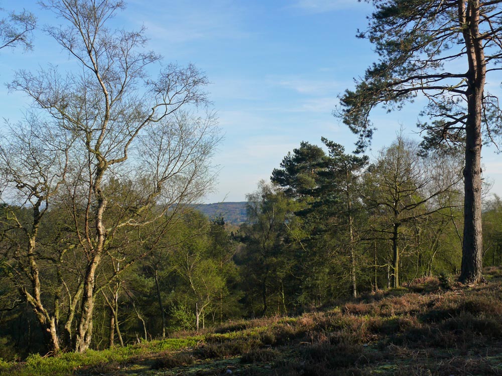 Gibbet Hill is the second highest point in Surrey and provides extensive views over the countryside.