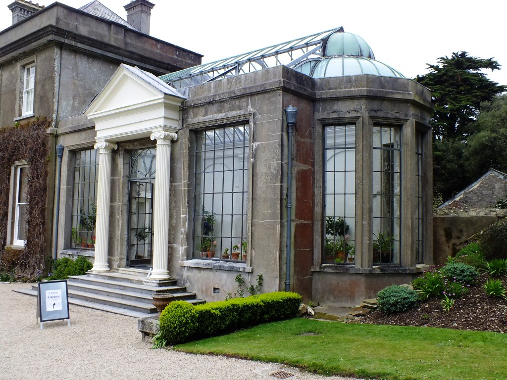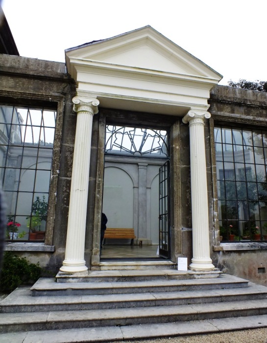 Wandering around Trelissick Gardens (Cornwall) in the springtime I came across the house (now open to the public) and this fabulous orangery. Those of you who follow my Earth Laughs in Flowers blog know how much I love flowers and glasshouses – my dream house would have an orangery. Sadly that is not likely to happen as I don’t have the cash for such an addition. Still I can dream. And in the meantime I can drool over buildings such as this. Just look at that stone mullioned full-length bay window and leaded panes.