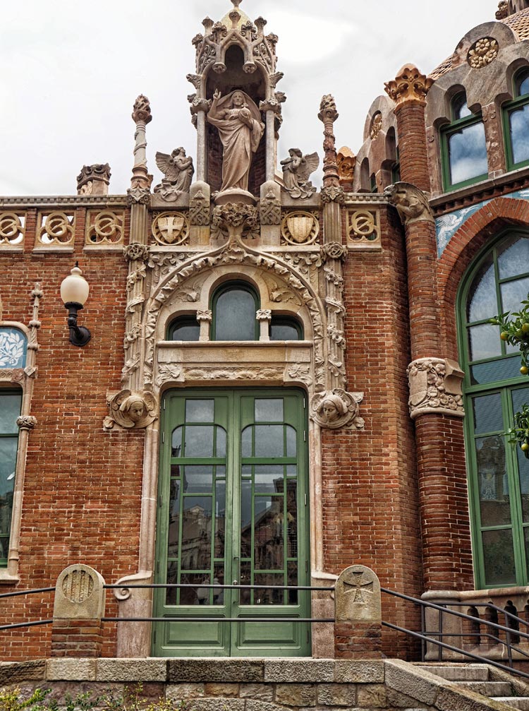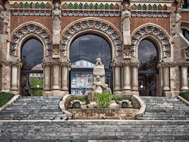The origins of the Hospital de la Santa Creu i Sant Paul date back to 1401 when six Barcelona hospitals were merged. In 1902 work began on a new hospital to serve the growing needs of the city and the architect Lluis Domenech i Montaner was commissioned to build the new hospital which opened in 1930. It was funded by a legacy from banker Pau Gil whose statue adorns the front staircase.