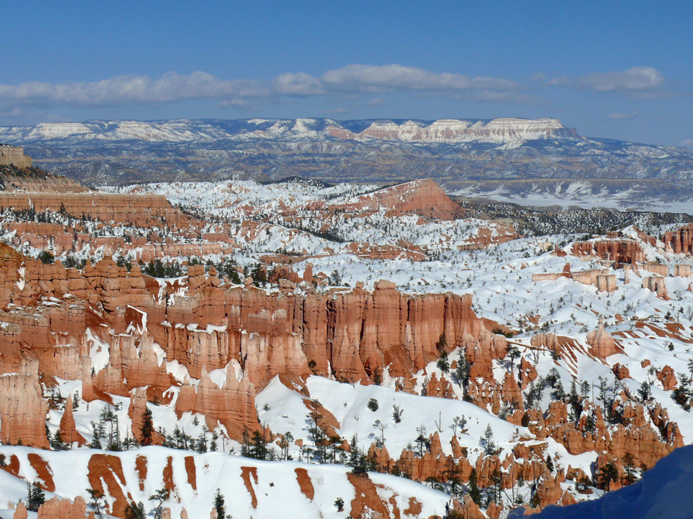 After breakfast at Ruby’s we took a couple of hours to revisit Bryce canyon, this time stopping at different viewpoints within the Amphitheatre Region. In winter you cannot travel to the south of the park and because of the heavy snowfall over the weekend even some of the usually accessible points were only open to cross-country skiers, not vehicles, and the delightfully named Fairyland Point was closed. No matter. We got all the views we could hope to see from Inspiration Point, Sunset Point and Sunrise Point. It must be wonderful to be able to hike the trails among the hoodoos in the spring/summer months. Queen’s Garden Trail, Navajo Loop and Peekaboo Loop are just a few.